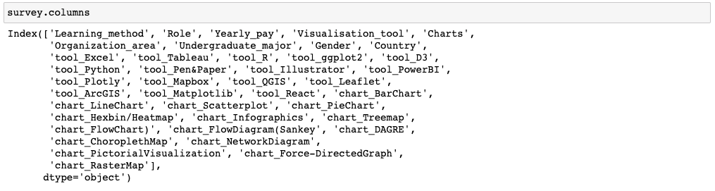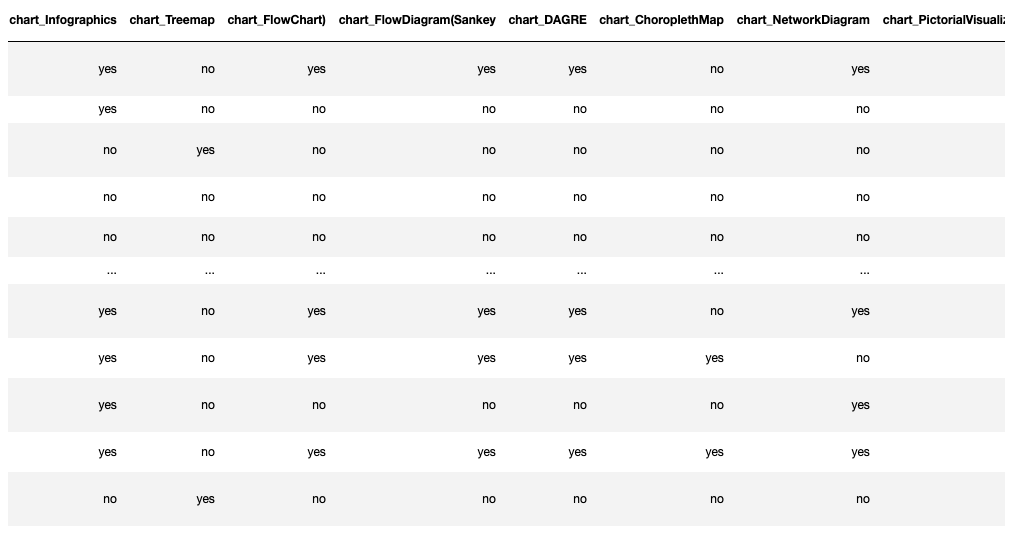 # tool_Matplotlib <chr>, tool_React <chr>, chart_BarChart <chr>,